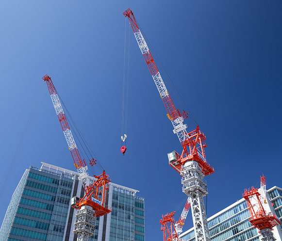 全国各地で作業現場での荷揚げ、特殊揚重(資材・材料等の搬入・搬出)を行っております。
